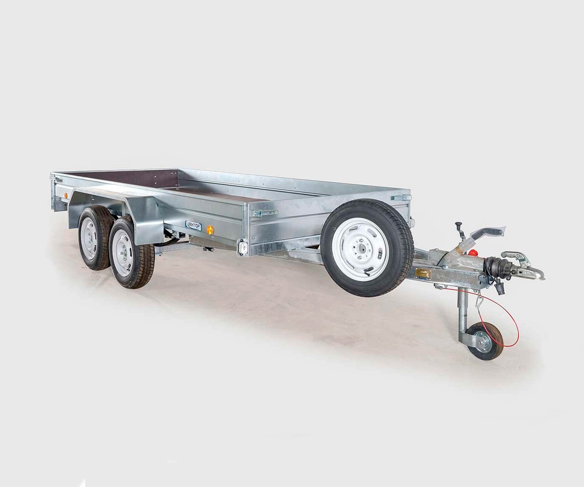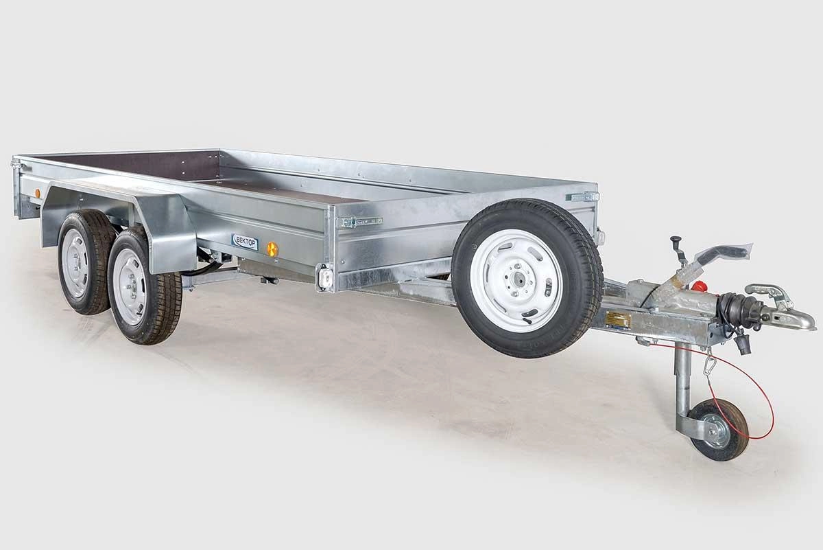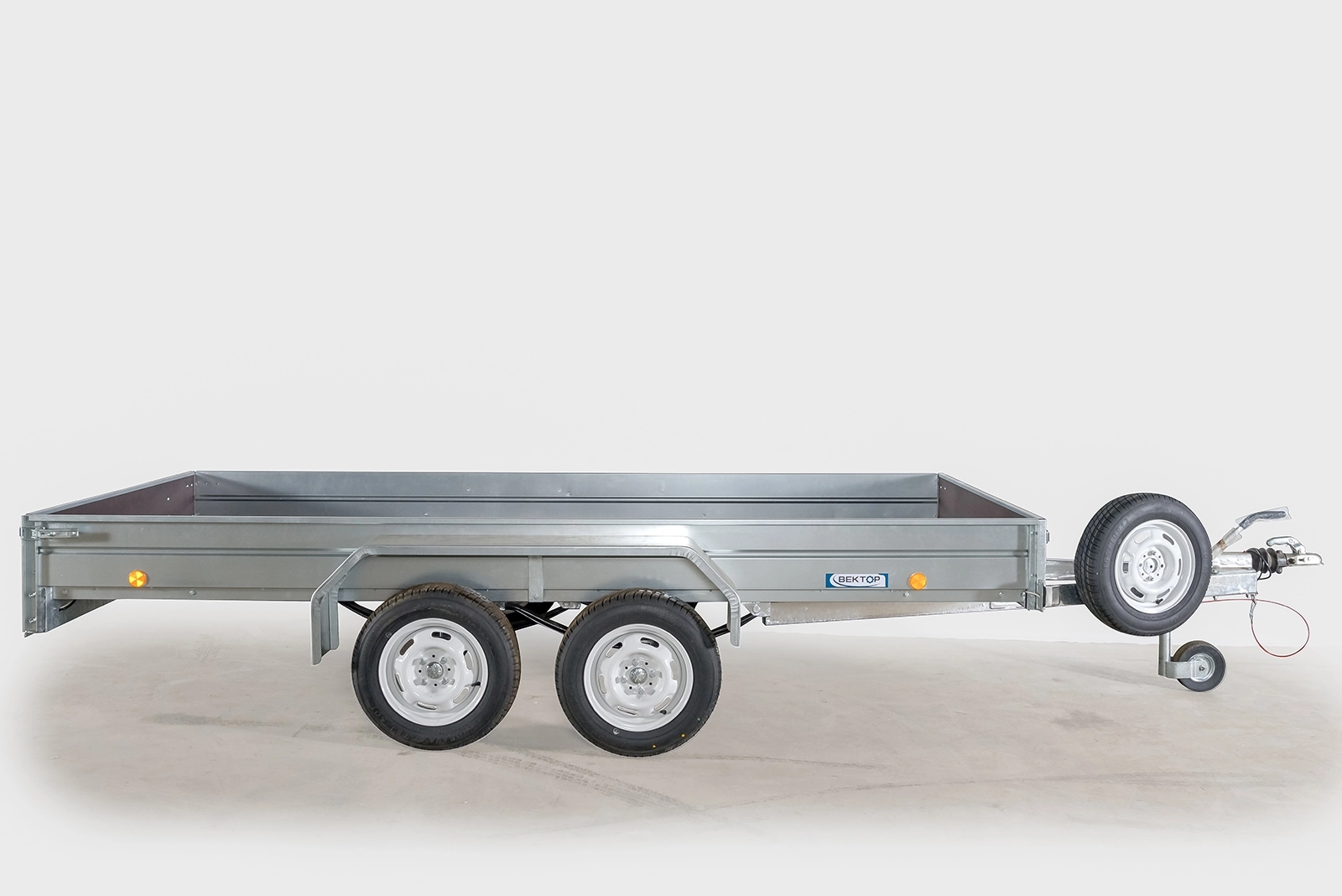 Рама, дышло и оси прицепа полностью оцинкованы методом горячего цинкования изнутри и снаружи. Борта и крылья из оцинкованной стали. Прицеп двухосный, с тормозом наката, кузов не откидывается, передний и задний борта откидные, с возможностью быстрого съёма, Дышло V-образное. Днище - ламинированная фанера. Подвеска колес (R14С) на четырёх полуэллиптических переменного сечения рессорах с гидравлическими амортизаторами. Размеры кузова 3500*1500 мм. Высота бортов 240 или 380 мм. Грузоподъёмность 2100 кг.