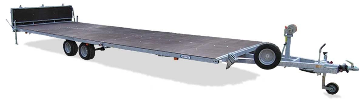 Рама, дышло и ось прицепа полностью оцинкованы методом горячего цинкования. Прицеп двухосный, с тормозом наката. Днище - ламинированная фанера. Подвеска колес (R10) на четырёх полуэллиптических рессорах с гидравлическими амортизаторами. Габаритные размеры (мм):- длина 9440; - ширина 2500; - высота 1500; - база 700; - колея 1985. Размеры платформы 7500*2250 мм. Платформа не откидывается. Полная масса 3000 кг. Грузоподъёмность 1970 кг. Опорное колесо, кронштейн для "запаски" и запасное колесо; опорные стойки сзади, на боковой части рамы прицепа, кронштейн на дышле с лебёдкой - в стандартной комплектации.