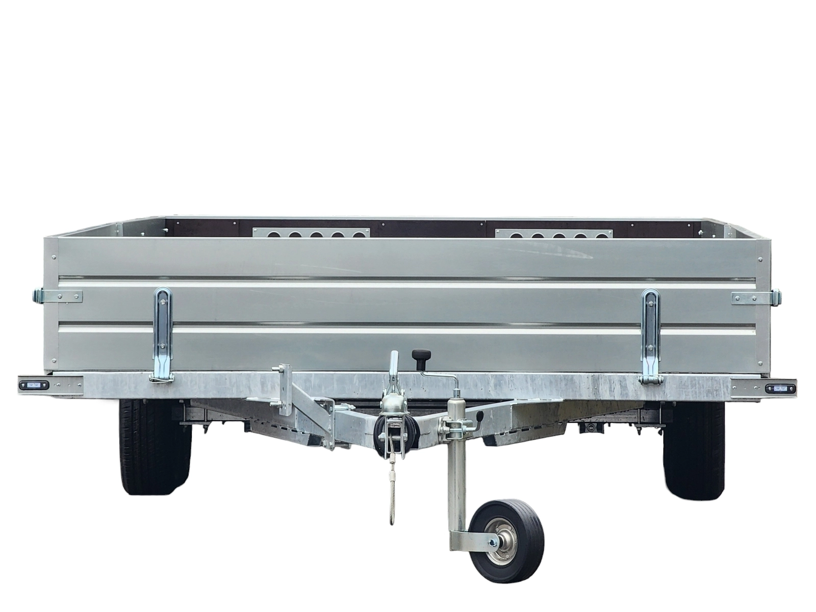 Опорное колесо, регулятор высоты сцепного устройства, кронштейн запасного колеса и металлические подножки - в базовой комплектации.