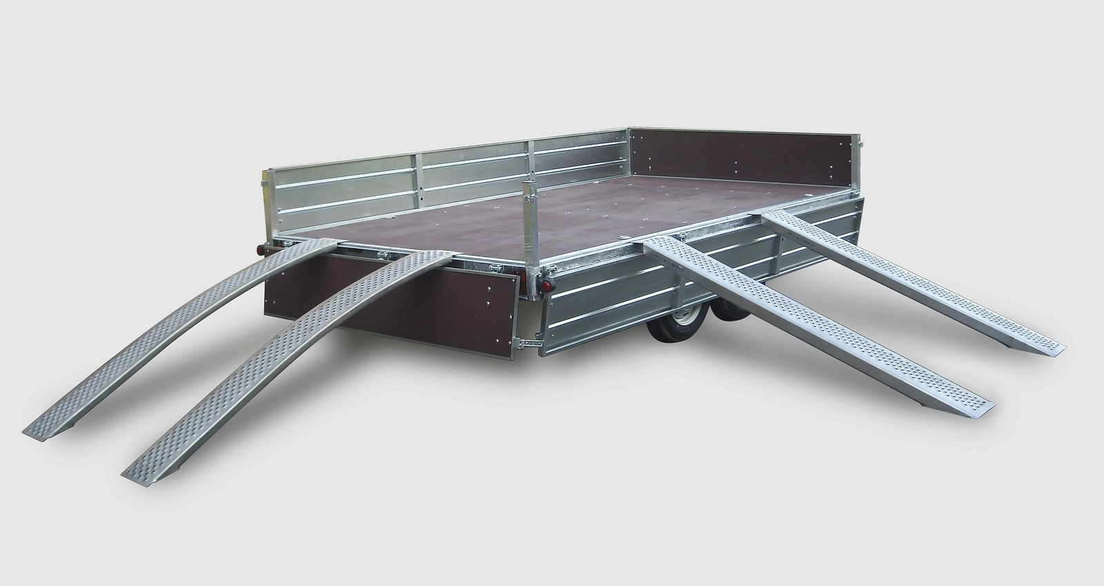 Размеры кузова 4000*2350 мм позволяют перевозить два снегохода или два квадроцикла одновременно. Передний, задний и продольные борта откидываются на петлях, что позволяет производить погрузку-выгрузку с любой стороны прицепа. Возможность быстрого демонтажа бортов позволяет превратить бортовой прицеп в грузовую платформу.