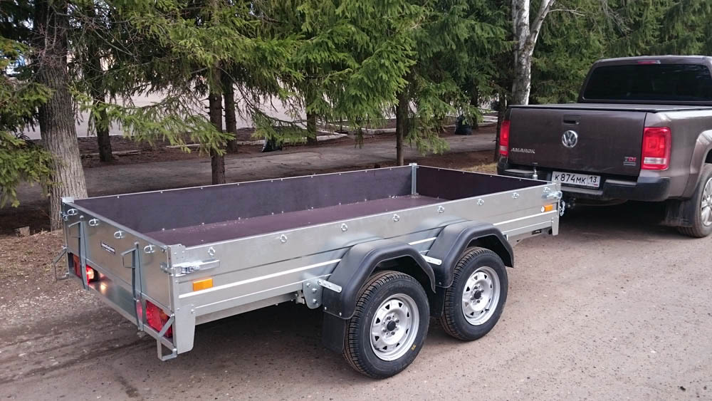 - Внутренние поверхности откидных бортов и настил платформы выполнены из влагостойкой фанеры толщиной 9 мм.
