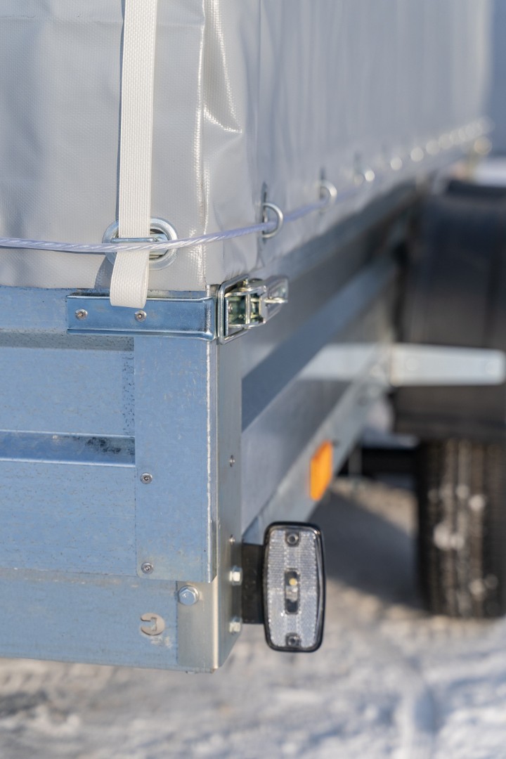 Борта толщиной 1,5 мм выполнены из оцинкованного металла с использованием лазерной резки и высокоточной гибки. Устойчивость к деформации, высокую жесткость обеспечивает специальный гнутый профиль борта. Передний и задний откидные борта усилены фанерой, быстросъемные, фиксируются бортовыми замками. Задний борт оборудован тросиками, усилены места крепления тросиков к бортам. Стойки бортов выполнены из 3 мм оцинкованной стали, есть возможность фиксации каркаса тента к стойкам боковых бортов.