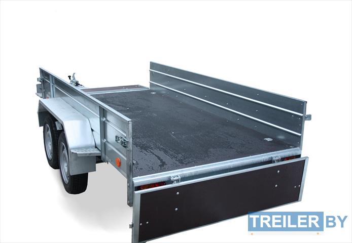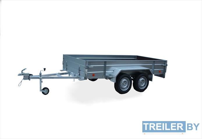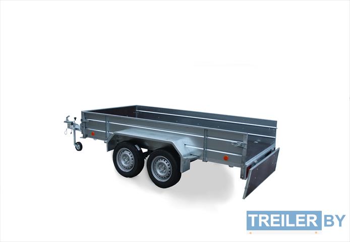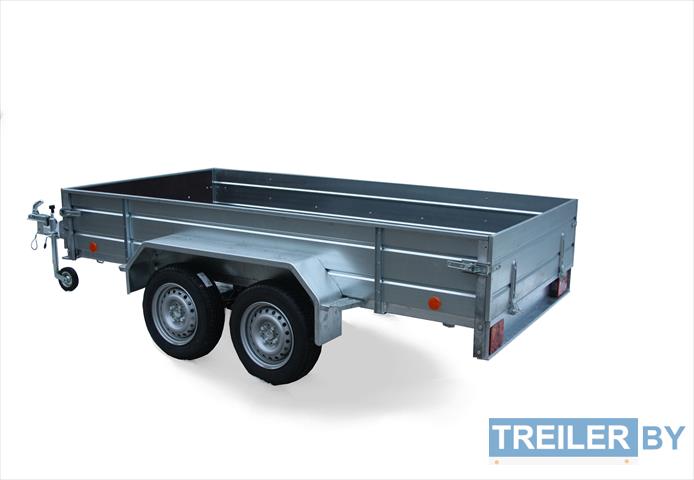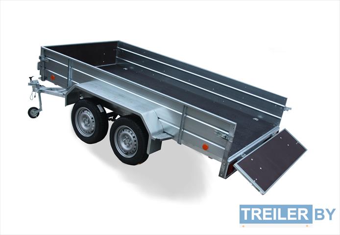 Рама, дышло и оси прицепа полностью оцинкованы методом горячего цинкования. Борта и крылья из оцинкованной стали. Прицеп двухосный, без тормоза, снабжен откидным кузовом, передний и задний борта откидные, с возможностью быстрого съёма. Дышло V-образное. Днище - ламинированная фанера. Подвеска колес (R13) на четырёх полуэллиптических рессорах с гидравлическими амортизаторами.