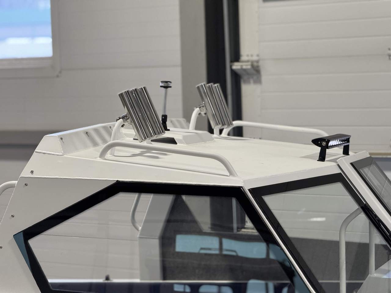 - Надежная надстройка обеспечивает дополнительную защиту от ветра, брызг и солнца, создавая комфортные условия для пассажиров даже в условиях непогоды.