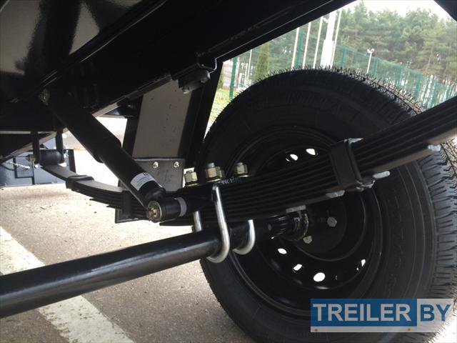 Прицеп Belaz 8123 2400x1250: одноосный, рессора 5-листовая (усиленная) «AL-KO», дышло треугольное, передний и задний борт открываются, рама усиленная, борта в рамке из квадратной трубы 25х25. Полная масса 750 кг. Размер платформы 1270 мм на 2400 мм. Ступица: ВАЗ-2108