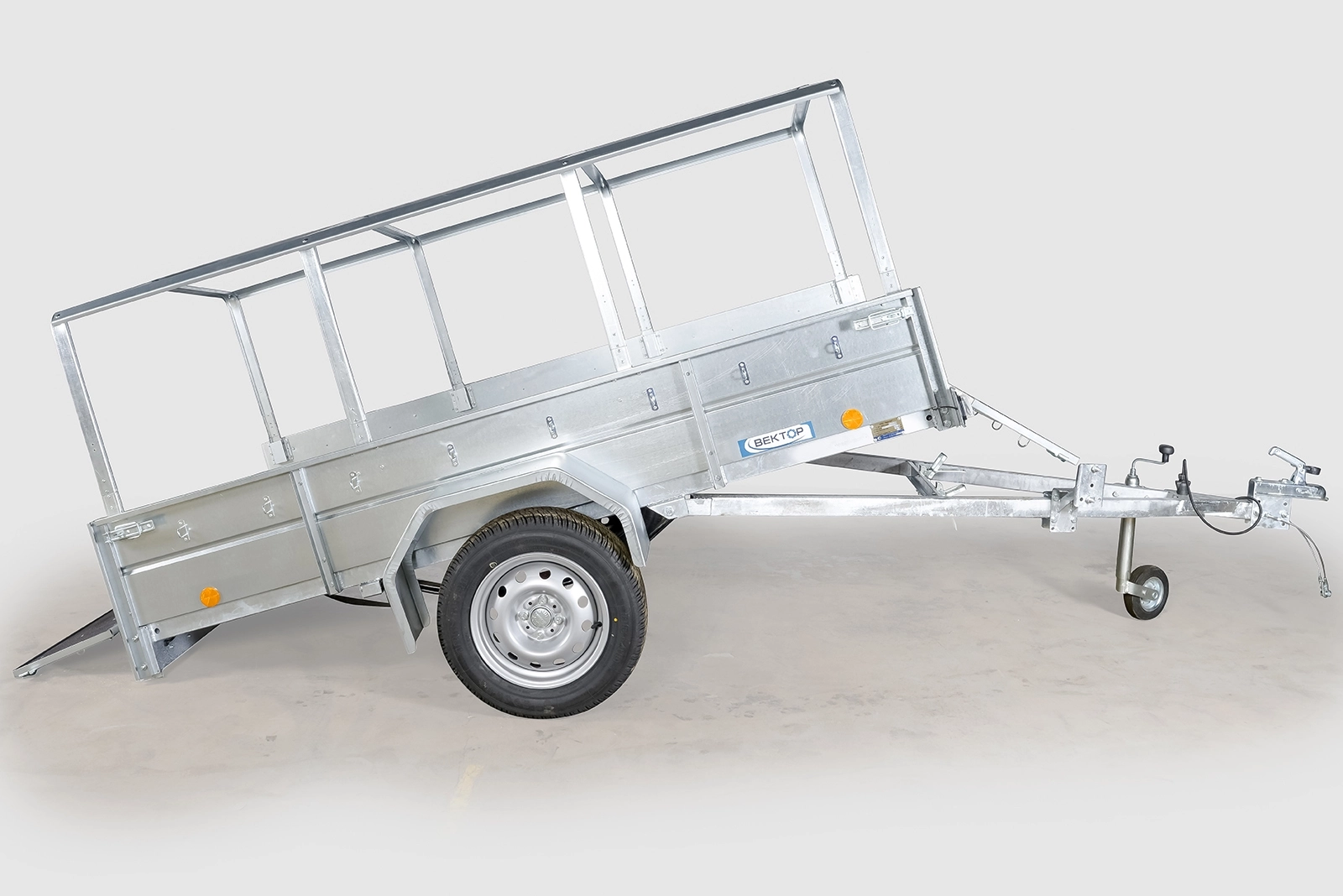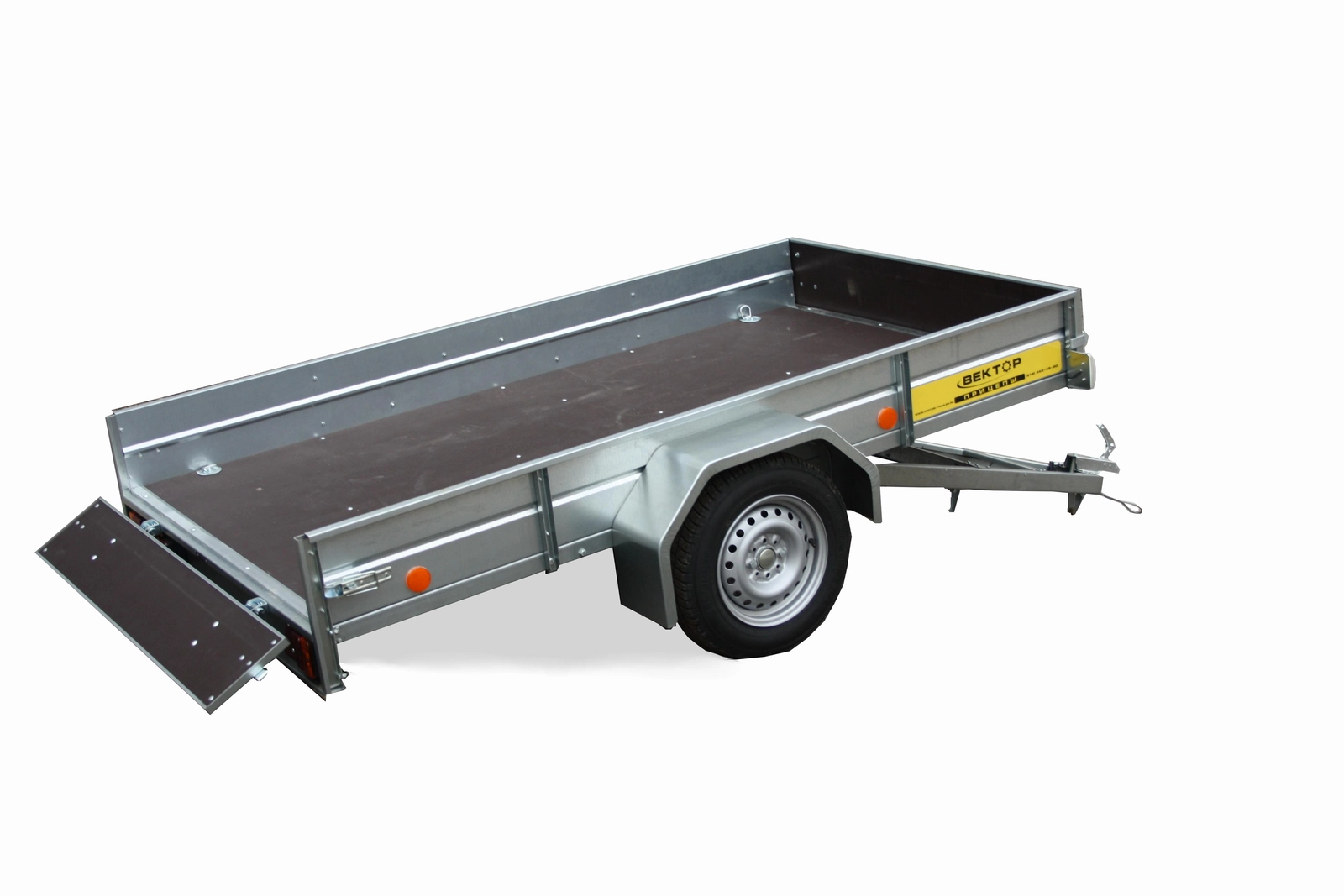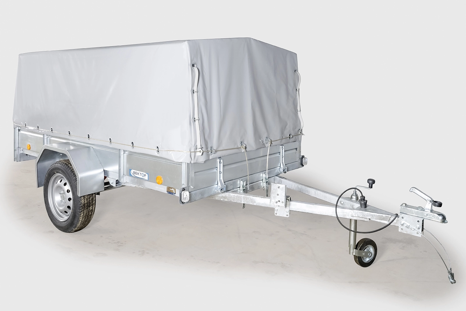 Опции: каркас с тентом 700 мм, каркас с тентом 1220 мм от борта, каркас с тентом 250 мм (возможна установка только на борт 380 мм), пластиковая крышка (КРЫШЕК ВРЕМЕННО НЕТ В НАЛИЧИИ), запасное колесо, опорная штанга или опорное колесо на дышле прицепа. Не требуется подкатегория "Е".