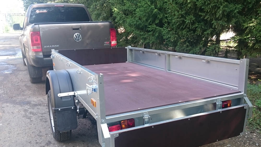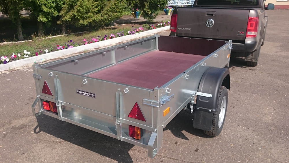 Одноосный прицеп ССТ-7132-02 является наиболее массовым прицепом на рынке благодаря оптимальному соотношению цены и функциональных возможностей. Выпускается в трех исполнениях. Прицеп полностью изготовлен из оцинкованного листа с применением лазерной технологии раскроя. Настил платформы и внутренние поверхности откидных бортов выполнены из влагостойкой фанеры толщиной 9 мм. Наиболее сложные узлы подвески (такие как – ступицы, амортизаторы, подрессорники) применены от отечественных серийных автомобилей. За дополнительную плату прицеп может быть укомплектован дугами, тентом пяти различных конструкций, надставными бортами, подъемными надставными бортами и передним опорным колесом. На прицеп могут быть установлены 15-дюймовые колеса (модель ССТ-7132-02 R15, стоимость данного исполнения есть в прайс-листе).
