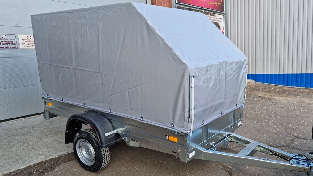 Одноосный прицеп ССТ-7132-02-С является наиболее массовым прицепом на рынке благодаря оптимальному соотношению цены и функциональных возможностей. Выпускается в трех исполнениях. Прицеп полностью изготовлен из оцинкованного листа с применением лазерной технологии раскроя. Настил платформы и внутренние поверхности откидных бортов выполнены из влагостойкой фанеры толщиной 9 мм. Наиболее сложные узлы подвески (такие как – ступицы, амортизаторы, подрессорники) применены от отечественных серийных автомобилей. За дополнительную плату прицеп может быть укомплектован дугами, тентом пяти различных конструкций, надставными бортами, подъемными надставными бортами и передним опорным колесом. На прицеп могут быть установлены 15-дюймовые колеса (модель ССТ-7132-02-С R15, стоимость данного исполнения есть в прайс-листе).