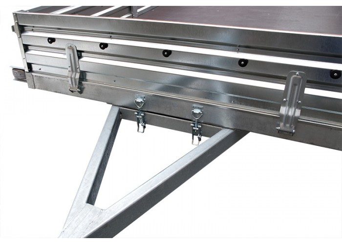 ● Оцинкованные стальные стойки бортов оборудованы петлями крепления груза (4 шт.). Благодаря дополнительным разделительным стойкам повышается жёсткость бортов и их сопротивление излому.