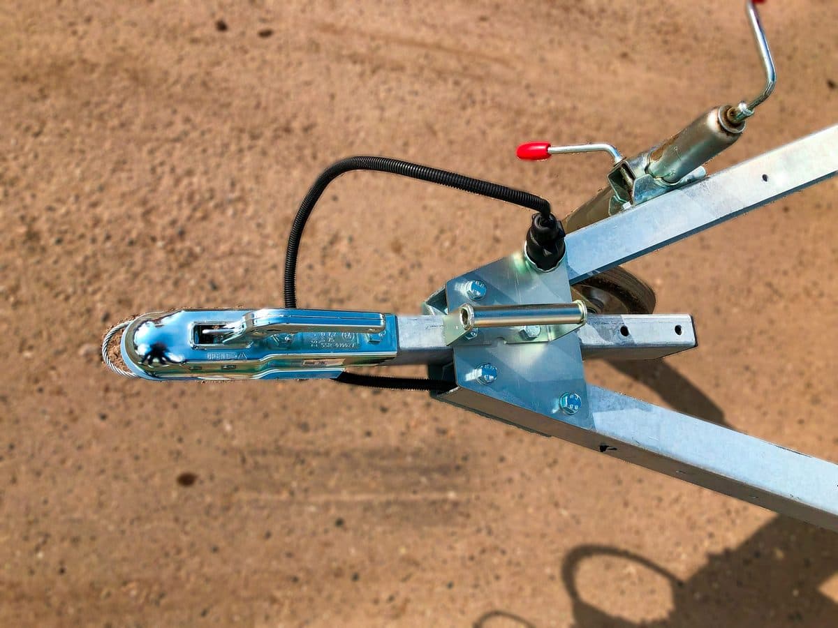 А-образное дышло оборудовано замковым устройством со страховочным тросиком и держателем штекера. Опционально возможна комплектация удлинителем дышла. Замковое устройство с индикатором износа, предназначено для шара ТСУ d=50 мм.