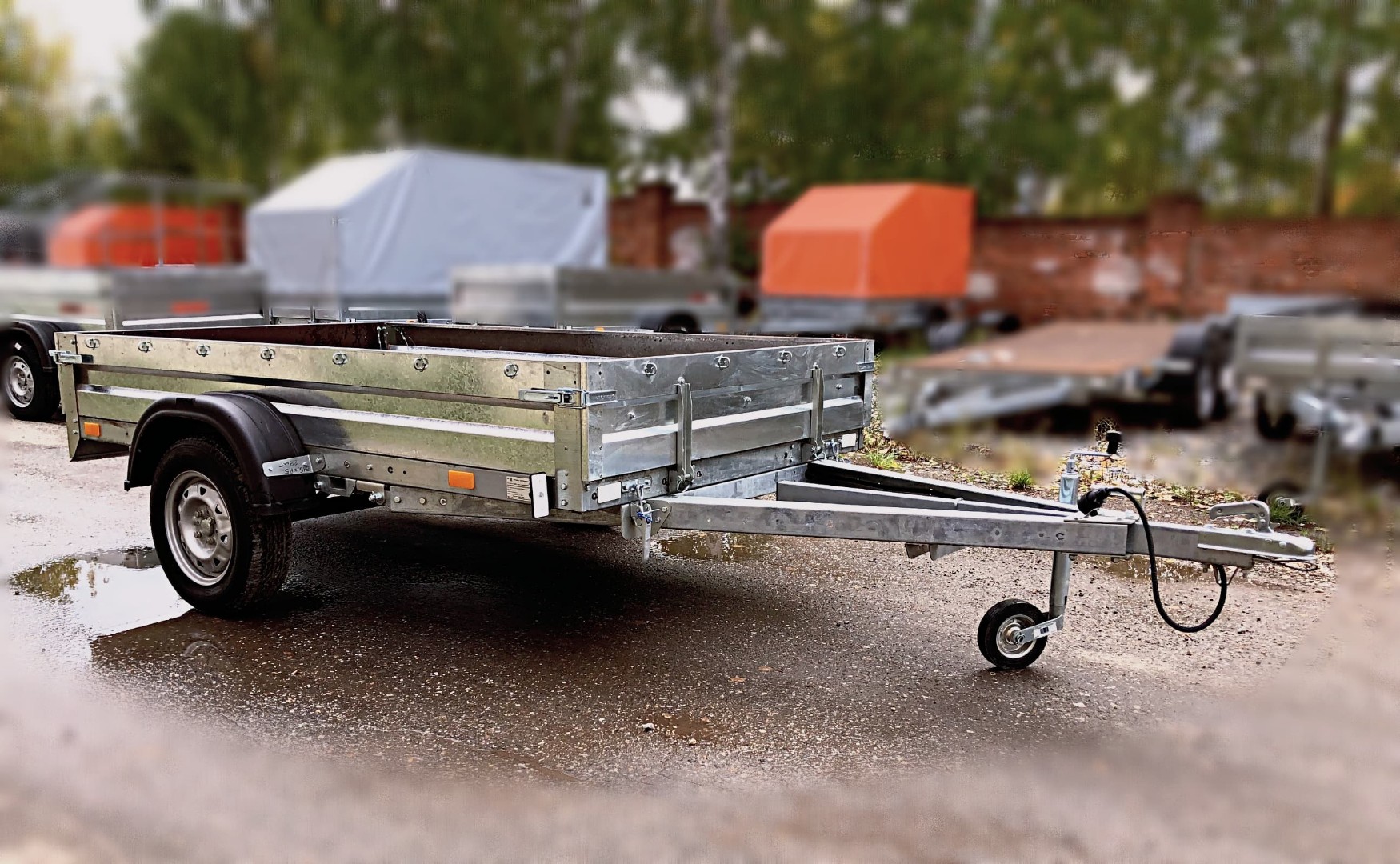 - Прицеп на рессорно-амортизаторной подвеске с днищем и светотехникой