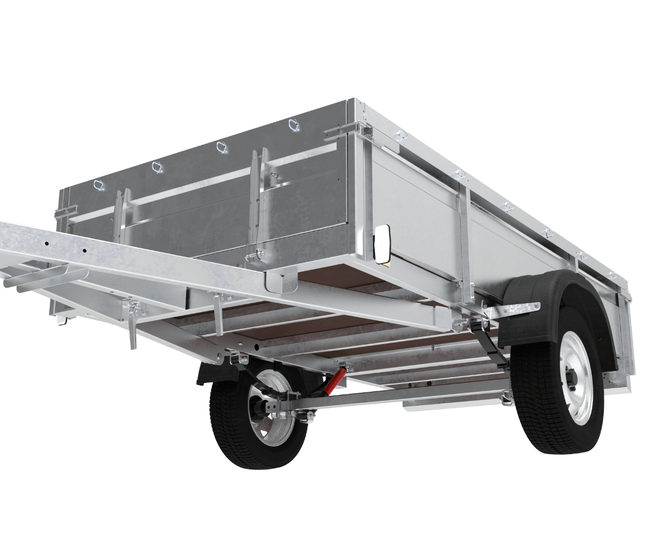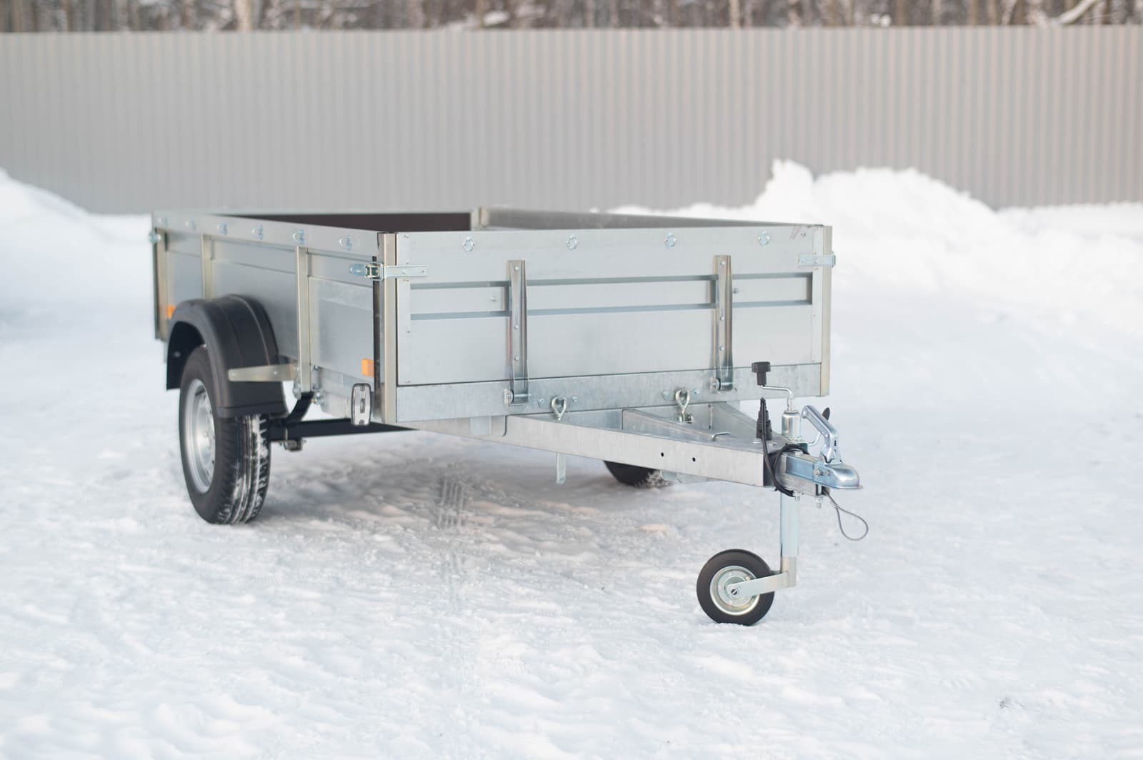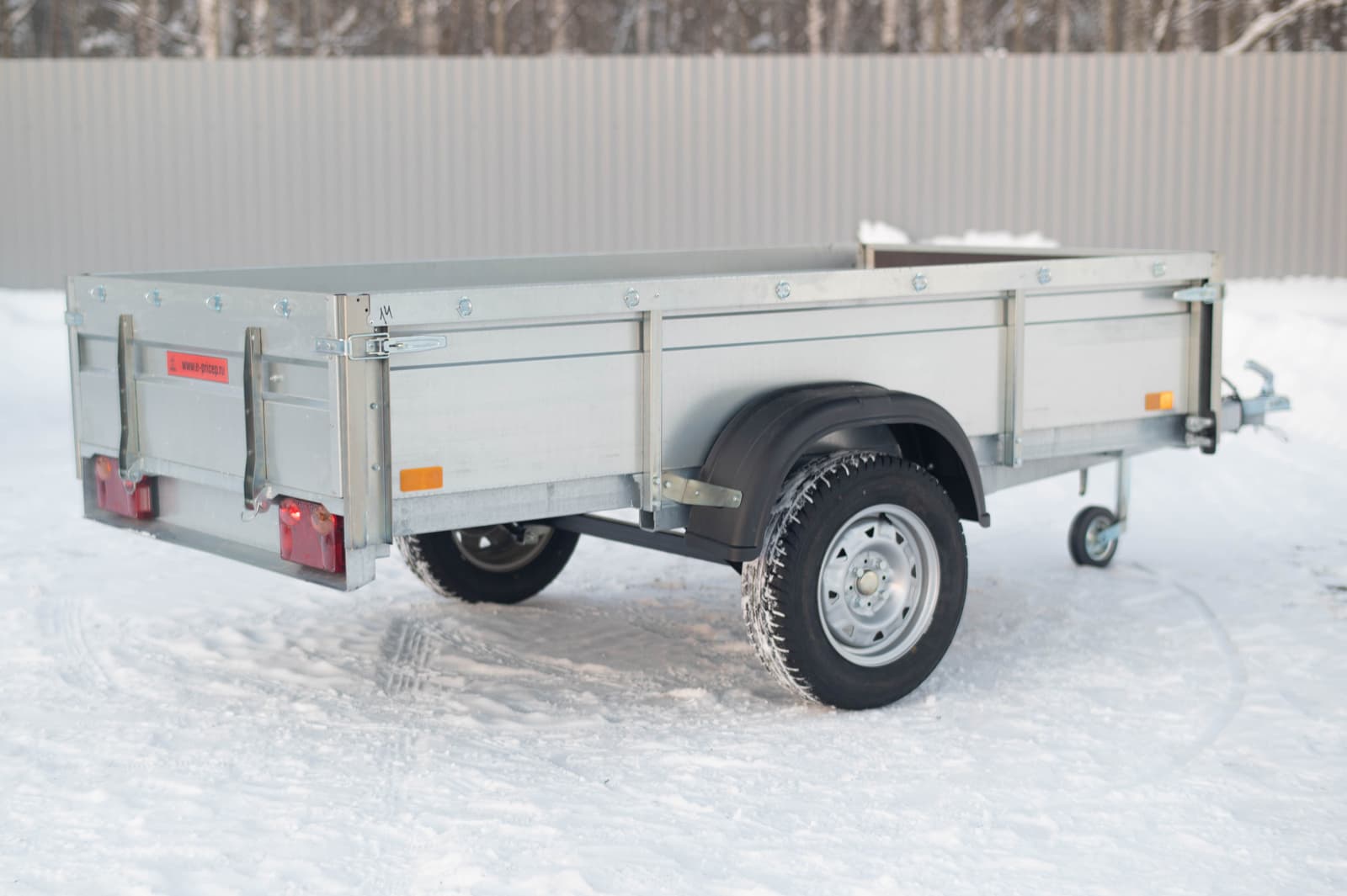 Борта гнутые с ребрами жесткости, монолитные по всей длине прицепа, высотой 400мм. Передний задний борт откидные быстросъемные с увеличенными по высоте петлями, усилены фанерой, которая утоплена внутрь борта и не «съедает» внутренний размер прицепа.