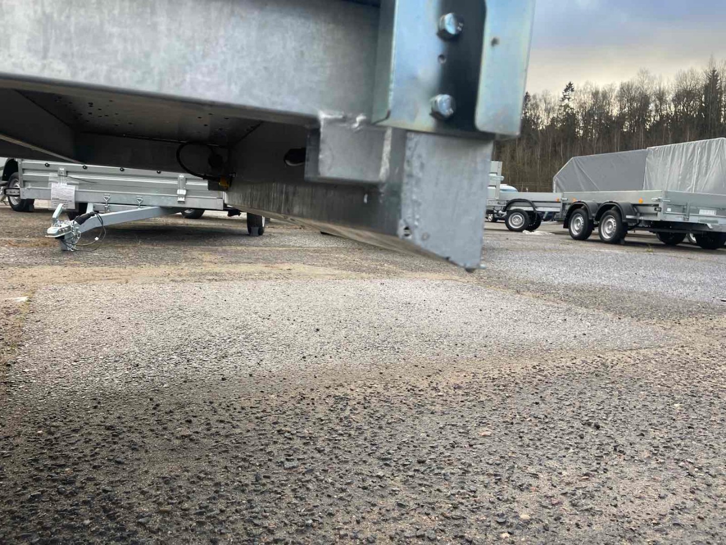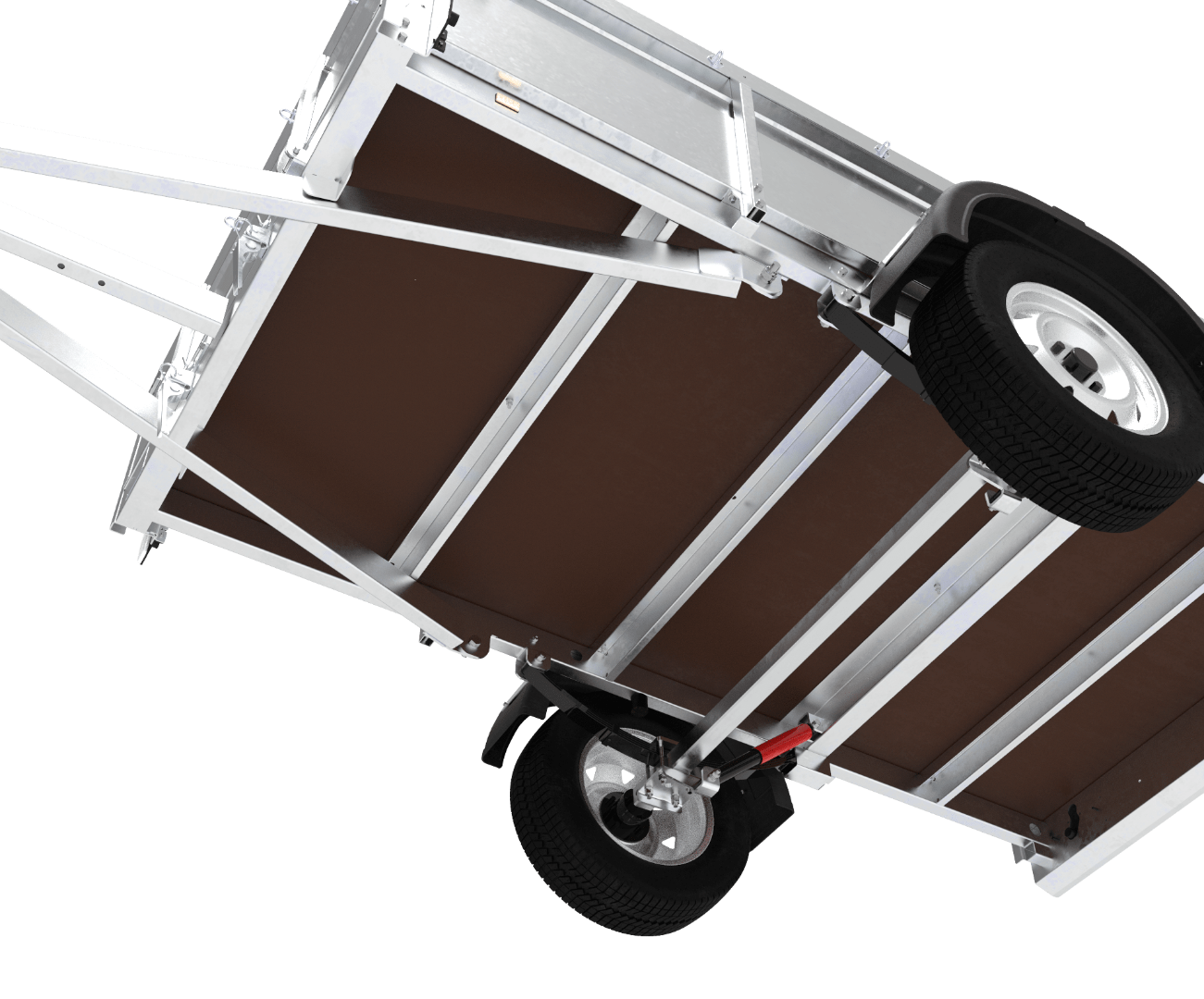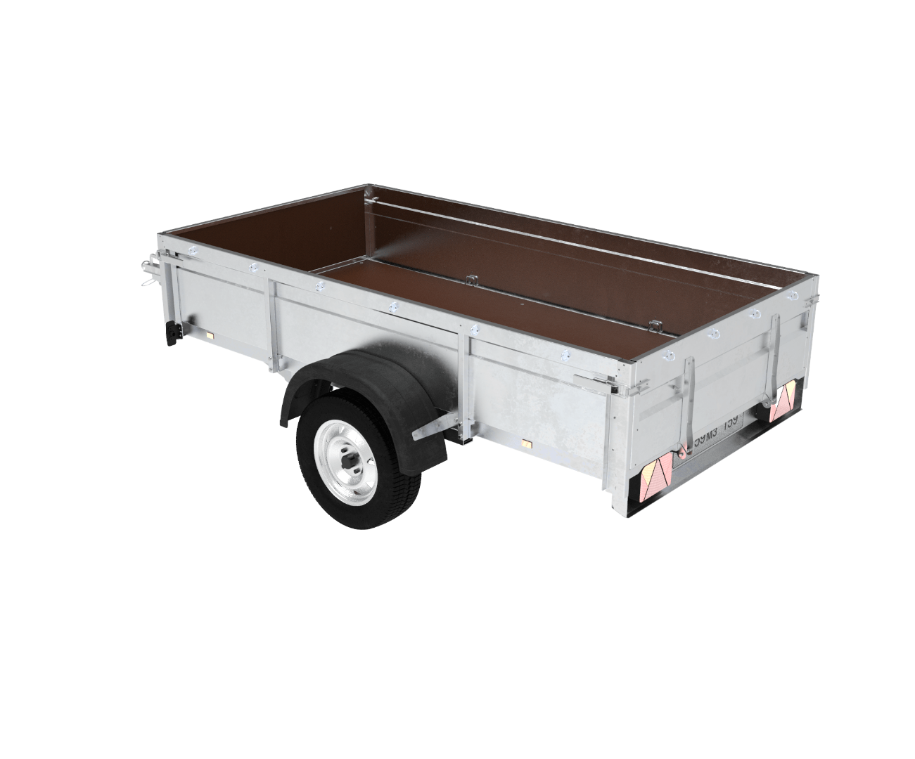 Борта гнутые с ребрами жесткости, монолитные по всей длине прицепа, высотой 400мм. Передний задний борт откидные быстросъемные с увеличенными по высоте петлями, усилены фанерой, которая утоплена внутрь борта и не «съедает» внутренний размер прицепа.