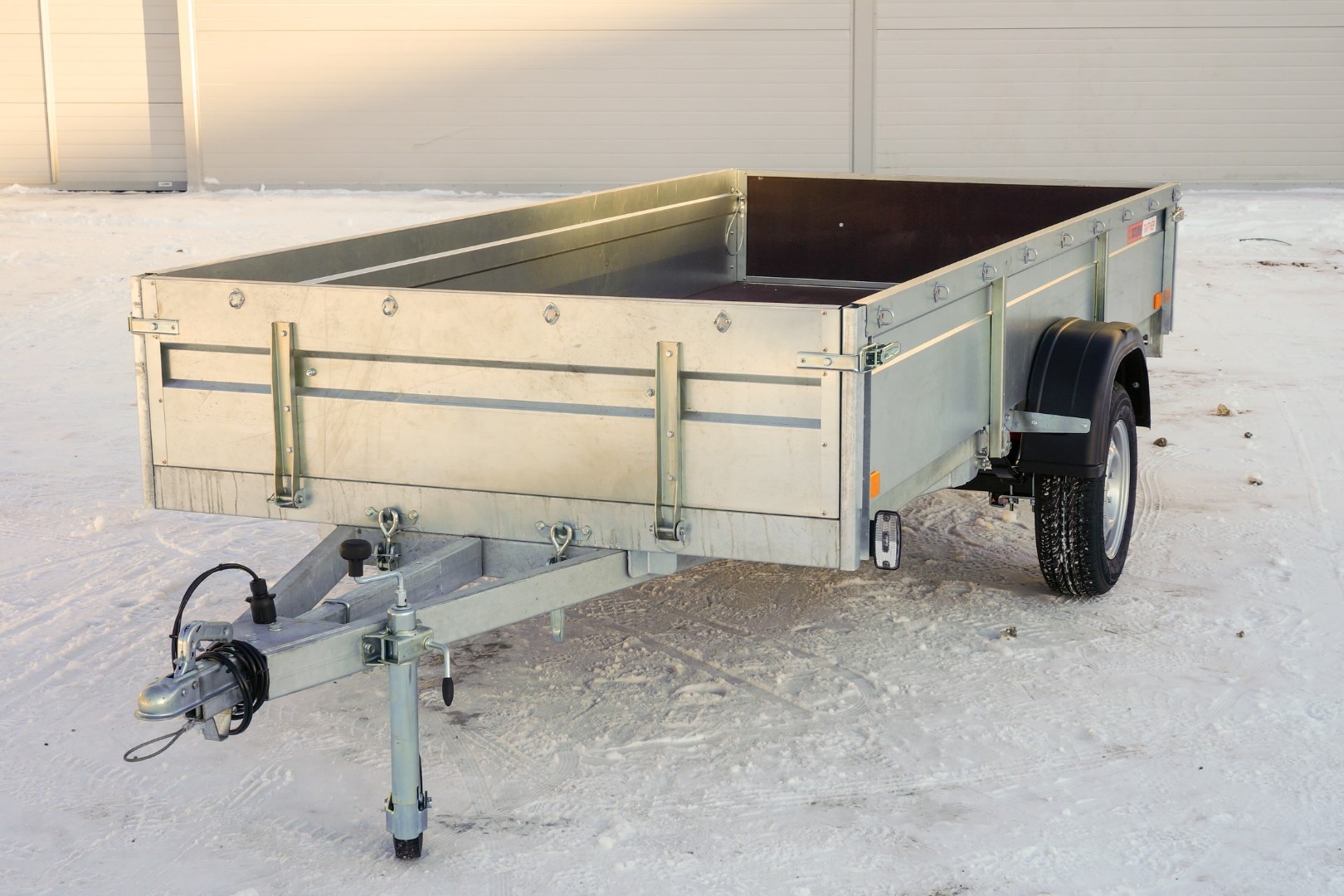 Качественная светотехника от лучших европейских производителей. В комплект входят 2 задних мультифункциональных фонаря (стоп-сигнал, указатели поворота, габаритный свет с подсветкой номера, противотуманный свет с одной стороны, задние треугольные светоотражатели), 2 передних габаритных LED-фонаря с белыми отражателями, боковые оранжевые светоотражатели. Проводка состоит из двух независимых жгутов на обе стороны прицепа, оборудована семиконтактным штекером.