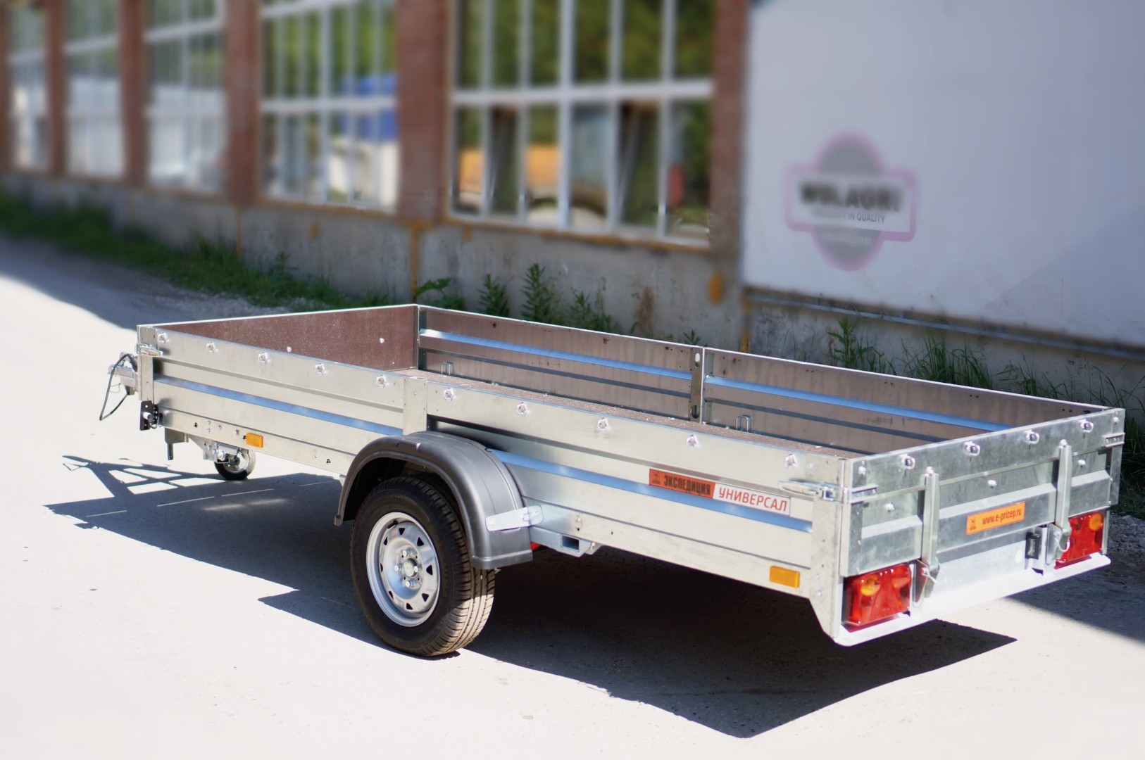 - Прицеп на рессорно-амортизаторной подвеске с днищем и светотехникой