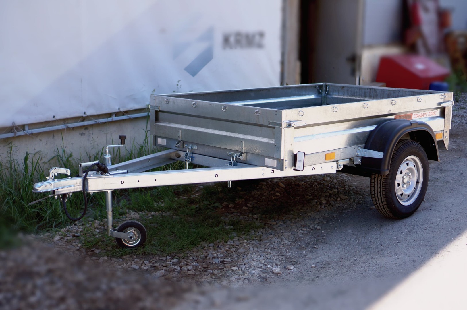 - Прицеп на рессорно-амортизаторной подвеске с днищем и светотехникой