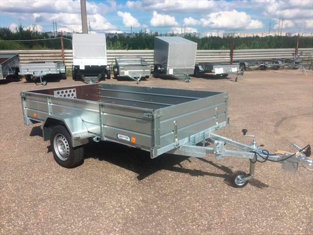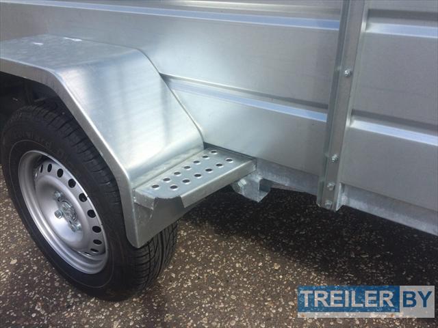Прицеп одноосный, без тормозов, снабжен откидным кузовом, передний и задний борта откидные, с возможностью быстрого съёма. Рама, дышло и ось прицепа полностью оцинкованы методом горячего цинкования. Борта из оцинкованной стали. Дышло V-образное. Днище - ламинированная фанера. Подвеска колес (R13) на двух полуэллиптических рессорах с гидравлическими амортизаторами.