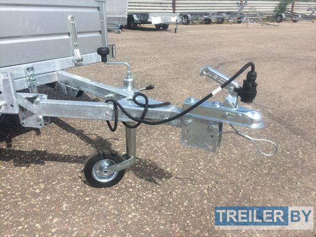 Опорное колесо, регулятор высоты сцепного устройства и кронштейн для "запаски" в стандартной комплектации. Опции: пластиковая крышка, каркас с тентом,