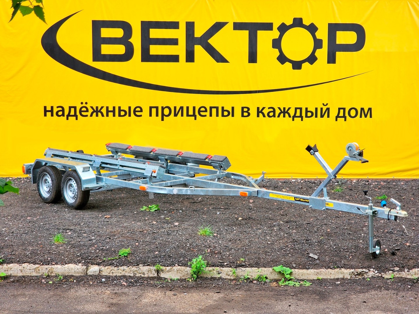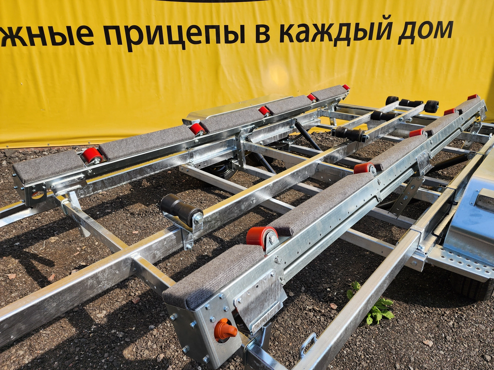 Рама, оси прицепа полностью оцинкованы методом горячего цинкования изнутри и снаружи. Крылья выполнены из оцинкованной стали. Прицеп двухосный, без тормозов. Подвеска колес (R13) на четырёх полуэллиптических переменного сечения рессорах с гидравлическими амортизаторами. Совмещенные ложементы с роликами регулируются по высоте и углу наклона. Прицеп снабжен специальной "качалкой", облегчающей погрузку и разгрузку плавательных средств на прицеп. Для обеспечения оптимальной нагрузки на сцепной шар подвеска может быть смещена вперед или назад в зависимости от положения центра тяжести перевозимого груза. Прицеп имеет съемный задний фартук, позволяющий исключить контакт светотехники с водой во время спуска и подъема лодки. Сцепное устройство шарового типа под шар D 50 мм.