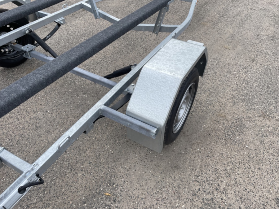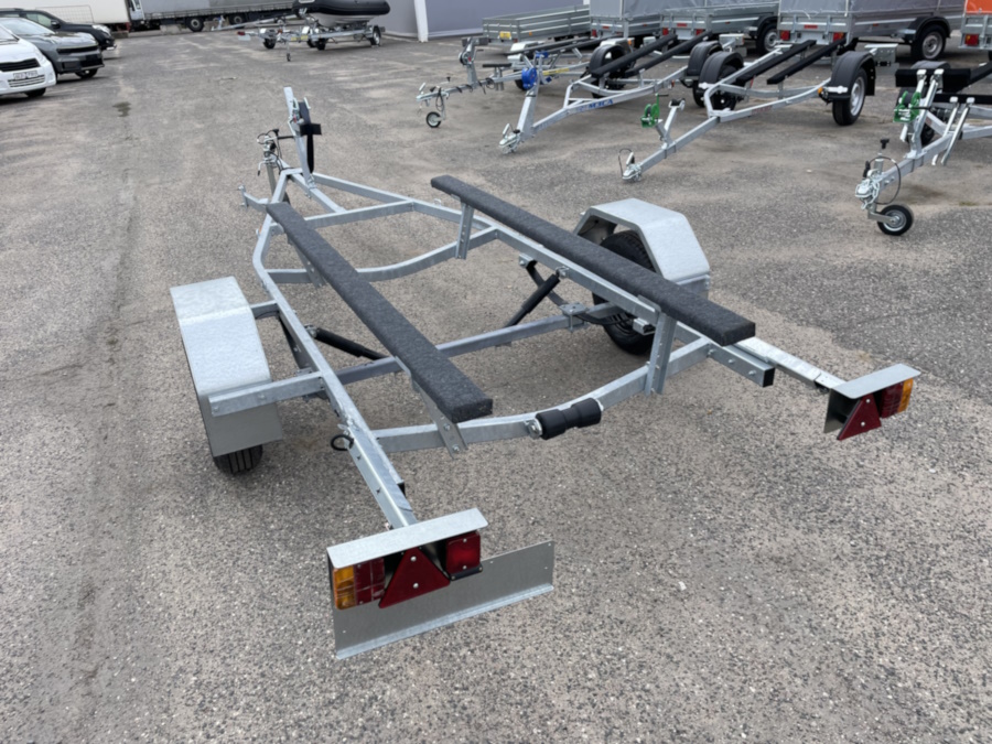 Рама, ось прицепа полностью оцинкованы методом горячего цинкования изнутри и снаружи. Крылья выполнены из оцинкованной стали. Прицеп одноосный, без тормозов. Подвеска колес (R13) на двух полуэллиптических переменного сечения рессорах с гидравлическими амортизаторами. Направляющие - брус, обтянутый ковролином имеющие регулировку по углу наклона. Сцепное устройство шарового типа, под шар D 50 мм. Полная масса 745 кг. Грузоподъёмность 549 кг. Габаритные размеры, мм - длина 5015; - ширина 1990; - высота 1050.