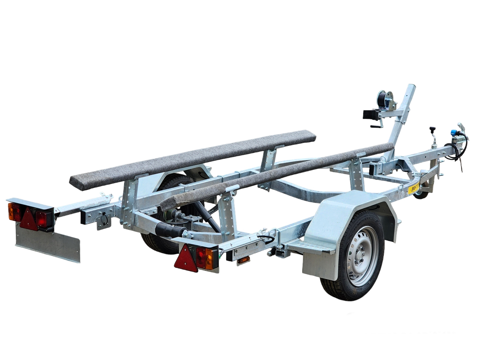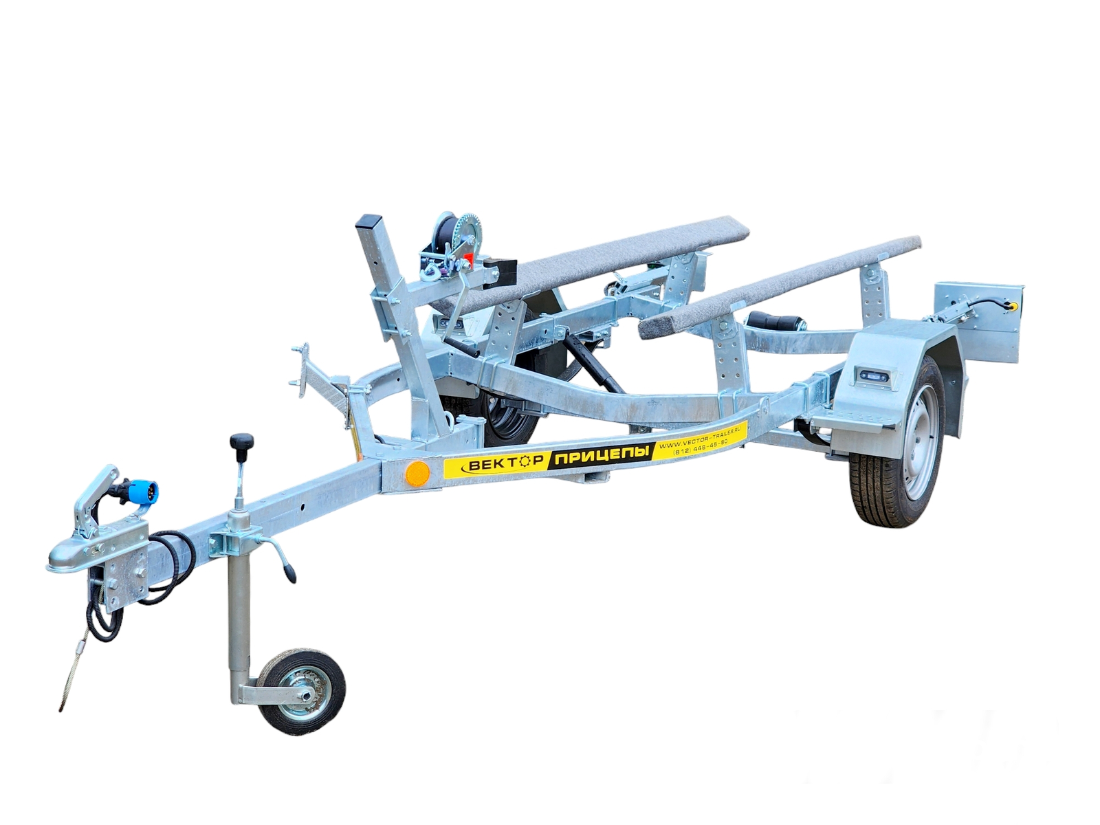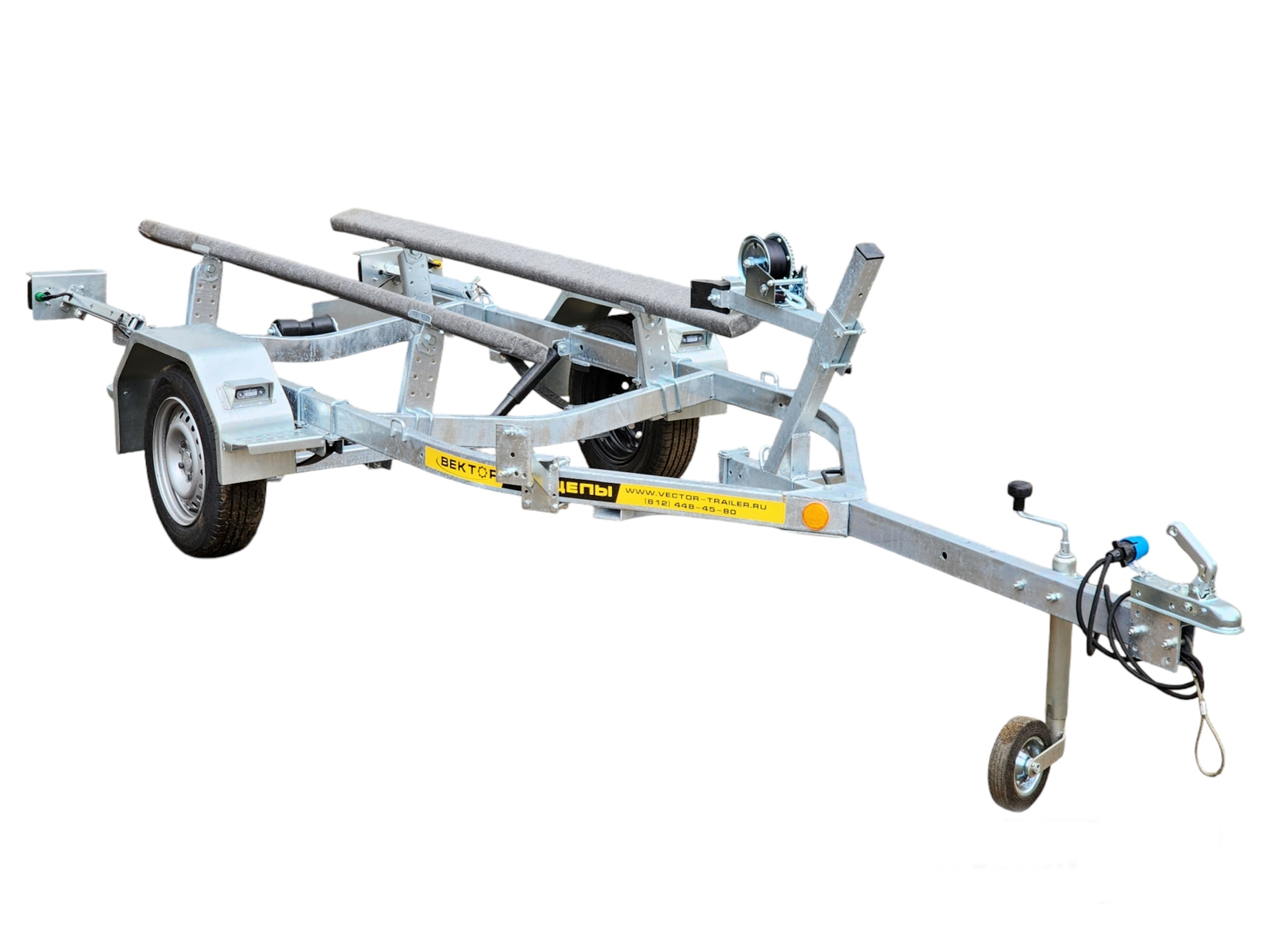 Предназначен для перевозки Гидроциклов или лодкок длиной до 3,8 метра по всем видам дорог, на которых допускается эксплуатация легковых автомобилей. Рама, ось прицепа полностью оцинкованные методом горячего цинкования. Крылья выполнены из оцинкованной стали. Прицеп одноосный, без тормозов. Подвеска колес (R13) на двух однолистовых полуэллиптических рессорах с гидравлическими амортизаторами.