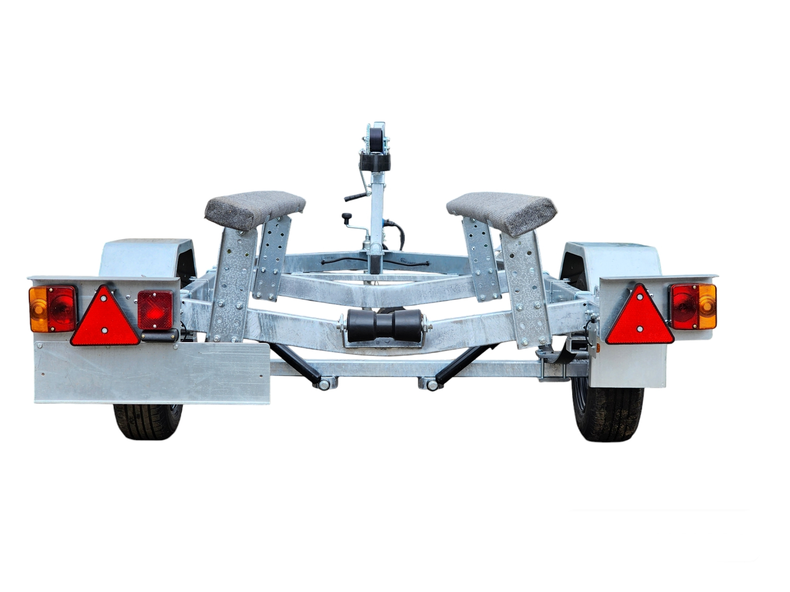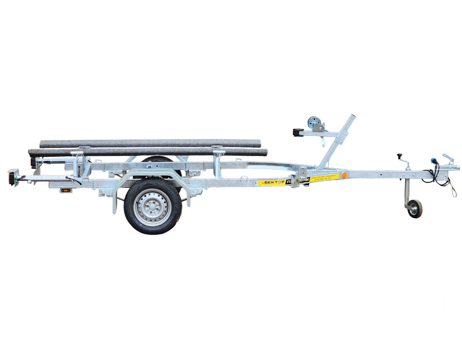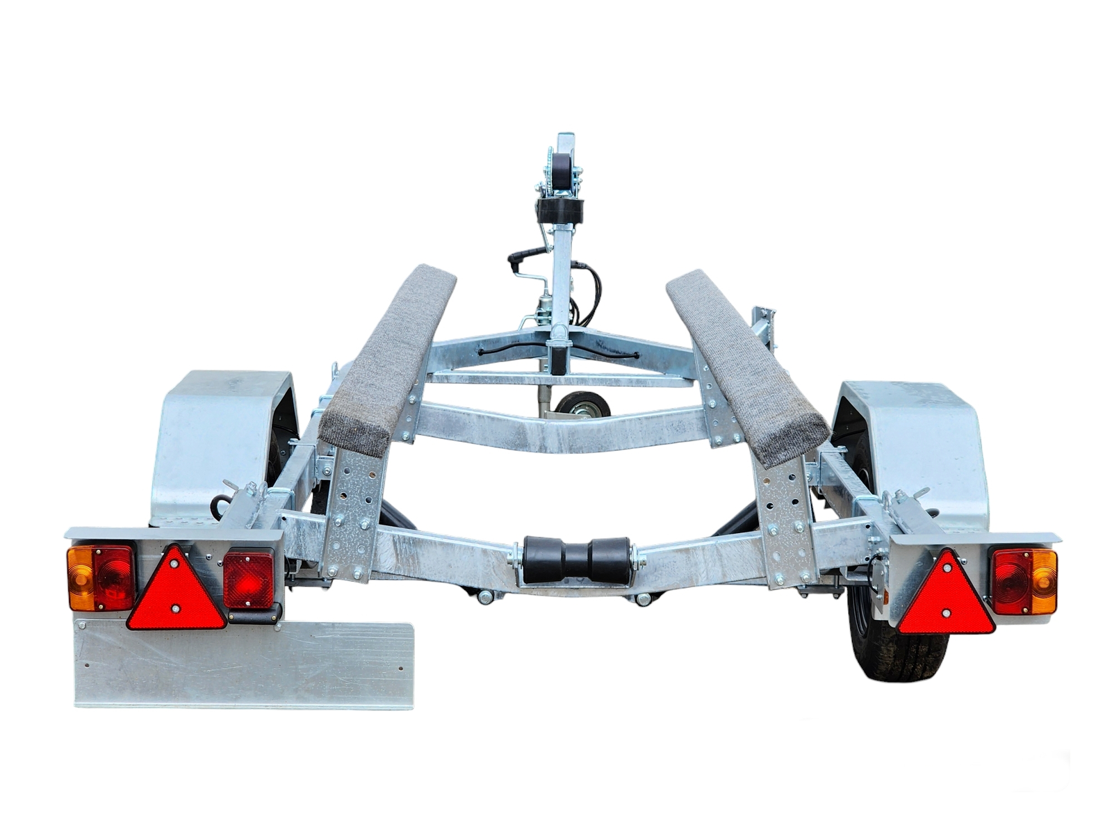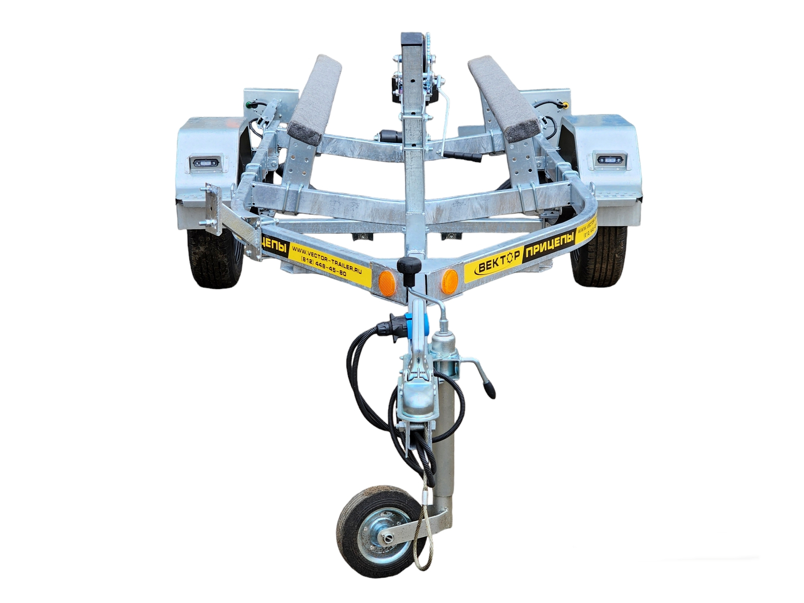 Предназначен для перевозки Гидроциклов или лодкок длиной до 3,8 метра по всем видам дорог, на которых допускается эксплуатация легковых автомобилей. Рама, ось прицепа полностью оцинкованные методом горячего цинкования. Крылья выполнены из оцинкованной стали. Прицеп одноосный, без тормозов. Подвеска колес (R13) на двух однолистовых полуэллиптических рессорах с гидравлическими амортизаторами.