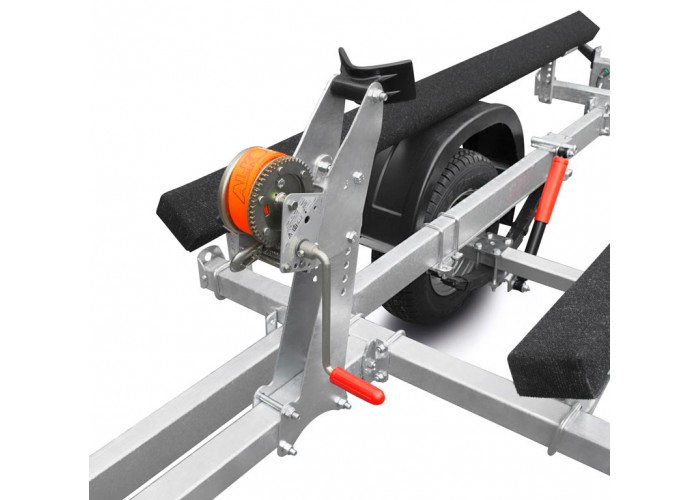 ● Передвижные носовые упоры имеют регулируемую высоту и угол наклона. Они могут быть отрегулированы и установлены в наиболее удобное положение для моделей перевозимой техники. Лебёдки облегчают погрузку техники на прицеп и страхуют её при спуске на воду.
