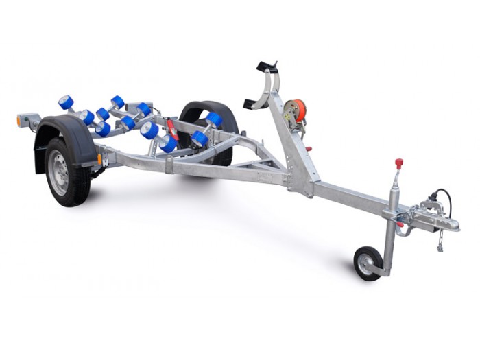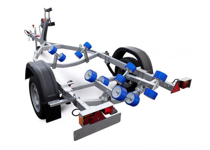 ● Роликовые опоры обеспечивают удобный спуск судна на воду и его подъём на сложных, необорудованных участках берега, где нет возможности заезда прицепа на достаточную глубину. Две передние опоры с двойными роликовыми модулями могут быть установлены в любой точке поперечины рамы, имеют регулируемый угол наклона и регулируемую высоту. Это позволяет настроить их в оптимальное положение под обводы корпуса перевозимого судна. Две задние опоры с четырьмя роликами могут быть установлены в любой точке поперечины рамы, их оцинкованный кронштейн имеет саморегулируемый угол наклона, а каждая пара роликов самостоятельно подстраивается под обводы судна. Такая конструкция облегчает центрирование и обеспечивает удобную поддержку судна и при его загрузке и выгрузке под большим углом.