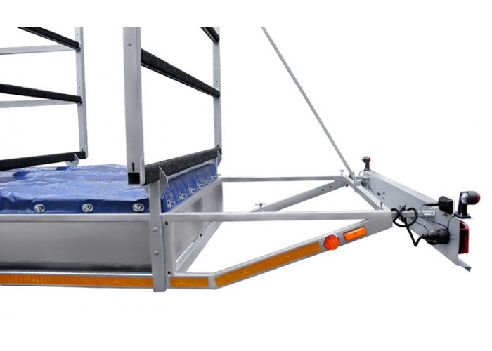 - Надёжное V-образное дышло выдерживает сильные динамические нагрузки и оснащено кронштейном крепления запасного колеса.