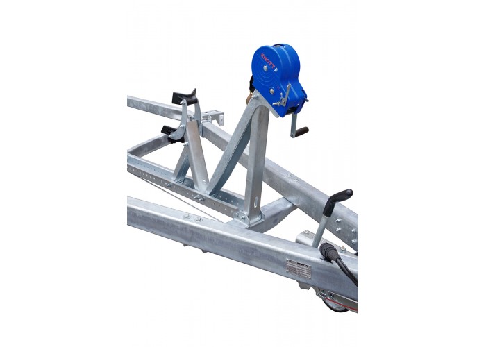 ● Передвижной носовой упор имеет регулируемую высоту и угол наклона. Он может быть отрегулирован и установлен в наиболее удобное положение для установки перевозимой техники. Лебёдка облегчает погрузку техники на прицеп и страхует её при спуске на воду.