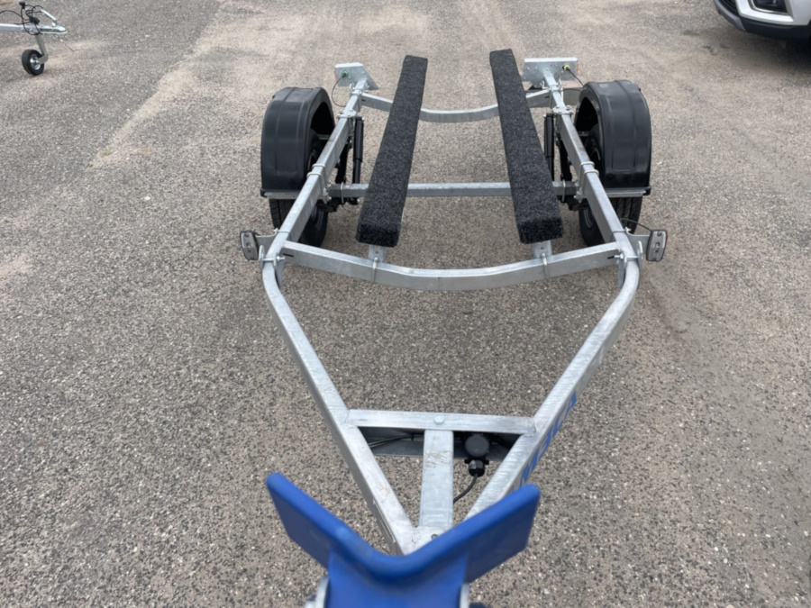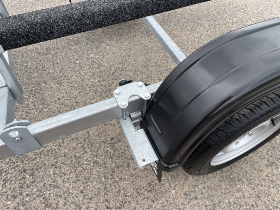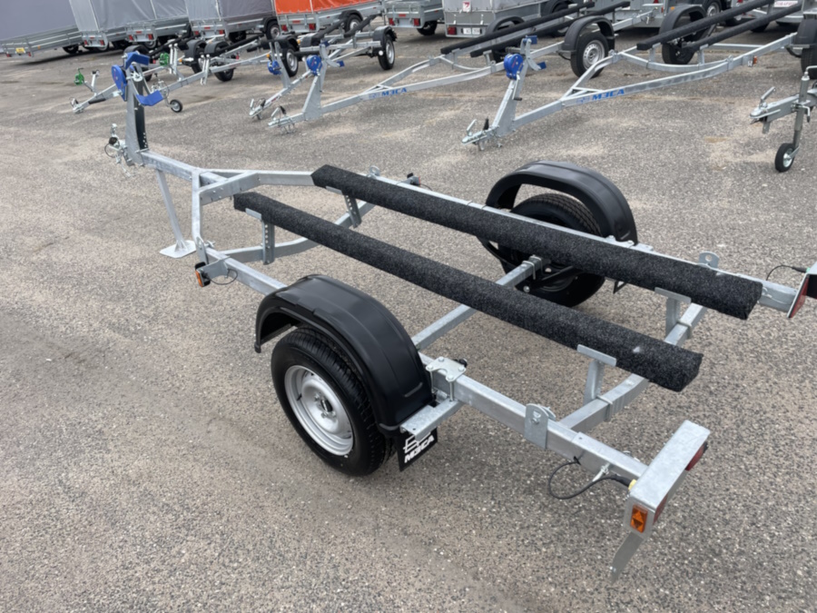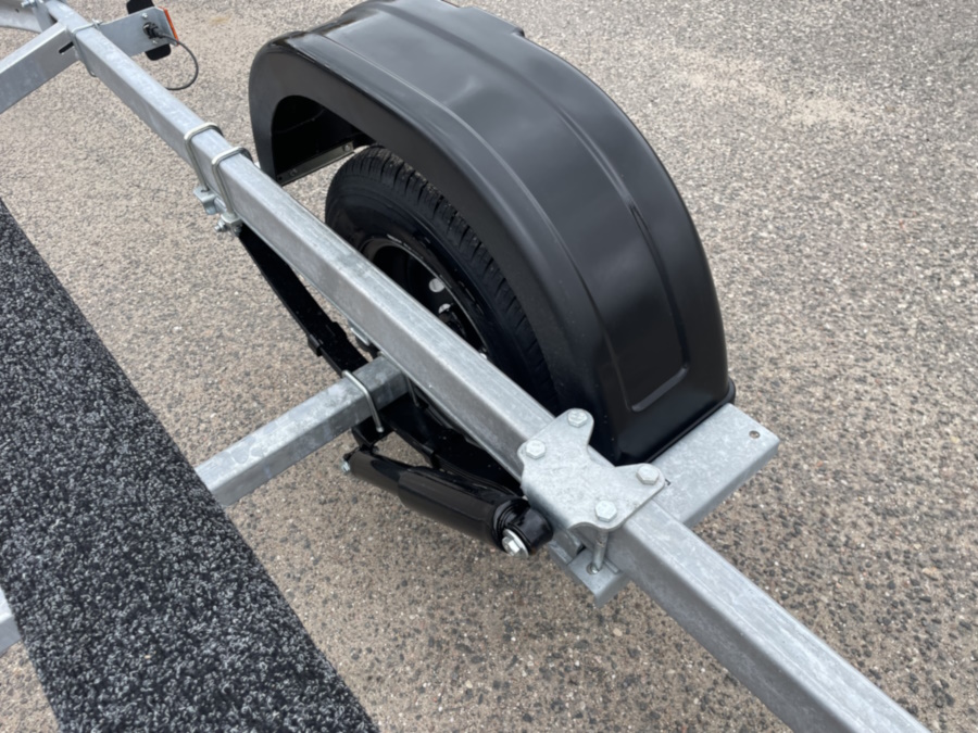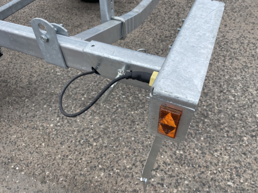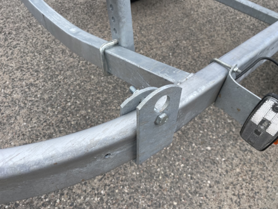 ● Оцинкованная стальная рама выполнена из замкнутого профиля, имеет большой запас прочности и позволяет уберечь жгут электропроводки от внешних повреждений по всей длине прицепа. Изогнутая конструкция поперечин рамы обеспечивает максимально низкую посадку судна, что снижает центр тяжести и повышает устойчивость прицепа во время движения.