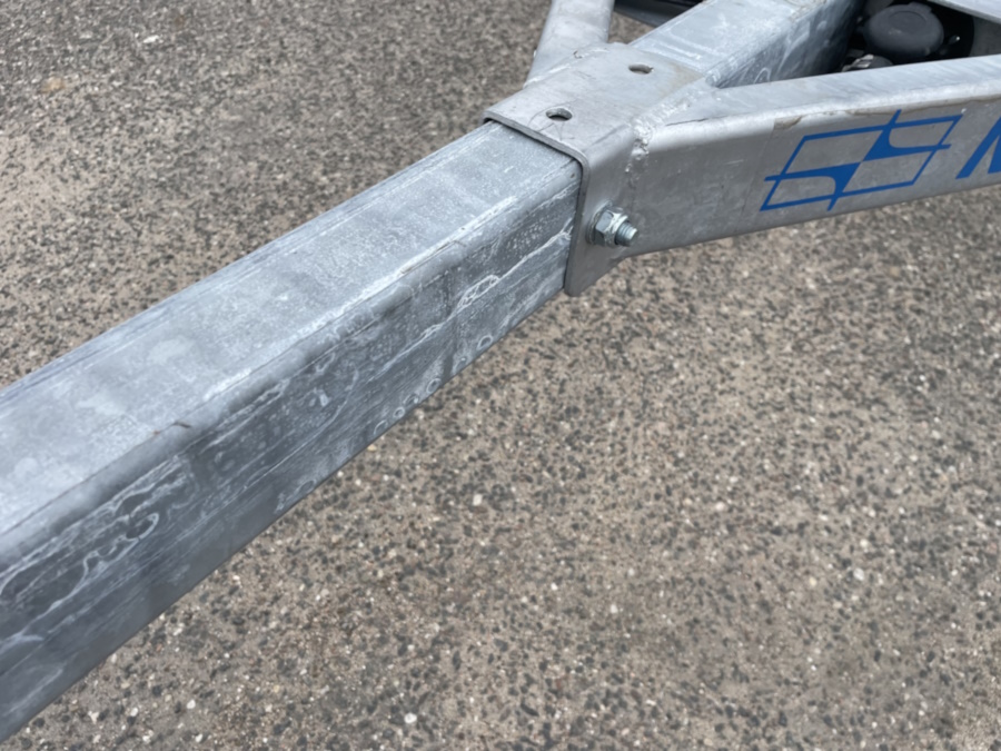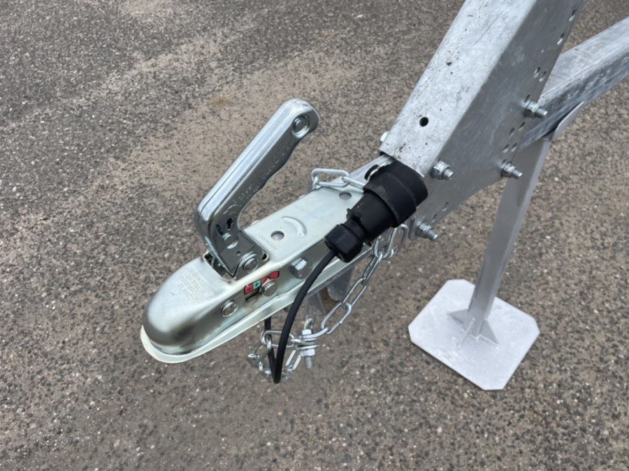 ● Оцинкованное съёмное дышло из стального замкнутого профиля установлено на болтовых соединениях, что позволяет при необходимости отсоединить его от рамы и тем самым уменьшить занимаемую площадь в гараже или на стоянке.