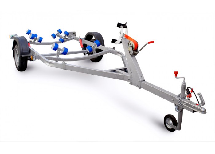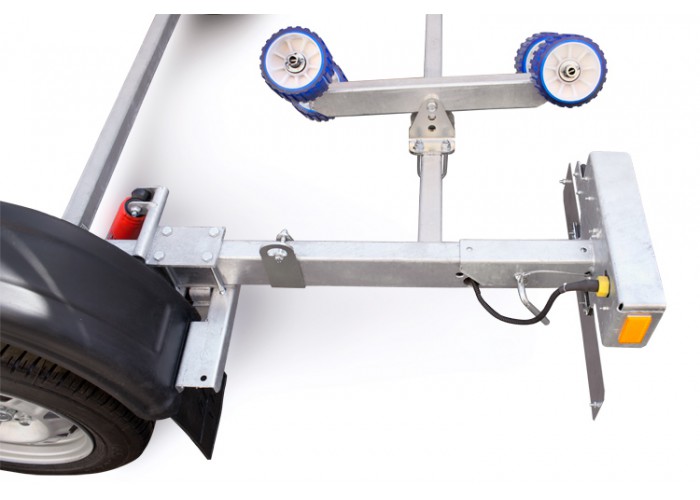 ● Роликовые опоры обеспечивают удобный спуск судна на воду и его подъём на сложных, необорудованных участках берега, где нет возможности заезда прицепа на достаточную глубину. Две передние опоры с двойными роликовыми модулями могут быть установлены в любой точке поперечины рамы, имеют регулируемый угол наклона и регулируемую высоту. Это позволяет настроить их в оптимальное положение под обводы корпуса перевозимого судна. Две задние опоры с четырьмя роликами могут быть установлены в любой точке поперечины рамы, их оцинкованный кронштейн имеет саморегулируемый угол наклона, а каждая пара роликов самостоятельно подстраивается под обводы судна. Такая конструкция облегчает центрирование и обеспечивает удобную поддержку судна и при его загрузке и выгрузке под большим углом.