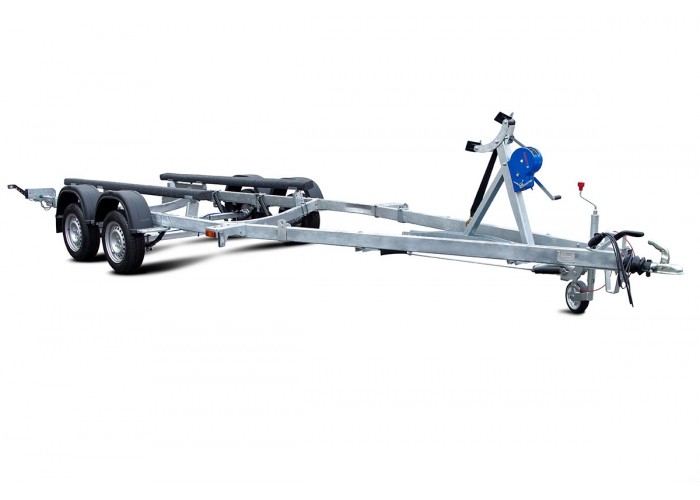 ● Передвижной носовой упор имеет регулируемую высоту и угол наклона. Он может быть отрегулирован и установлен в наиболее удобное положение для установки перевозимой техники. Лебёдка облегчает погрузку техники на прицеп и страхует её при спуске на воду.