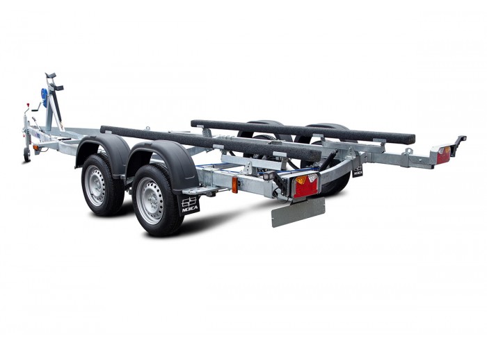 ● Ложементы могут быть установлены в любой точке поперечин рамы, имеют регулируемый угол наклона и регулируемую высоту. Это позволяет установить их в наиболее удобное положение, избежать давления на продольные реданы, а также расположить технику максимально низко, тем самым обеспечить устойчивость прицепа при движении и осуществлять спуск судна на воду меньшей глубине. При перевозках и хранении судна на прицепе ложементы позволяют равномерно распределить вес техники и уменьшить давление на корпус судна.