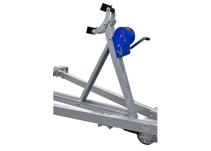 ● Передвижной носовой упор имеет регулируемую высоту и угол наклона. Он может быть отрегулирован и установлен в наиболее удобное положение для установки перевозимой техники. Лебёдка облегчает погрузку техники на прицеп и страхует её при спуске на воду.