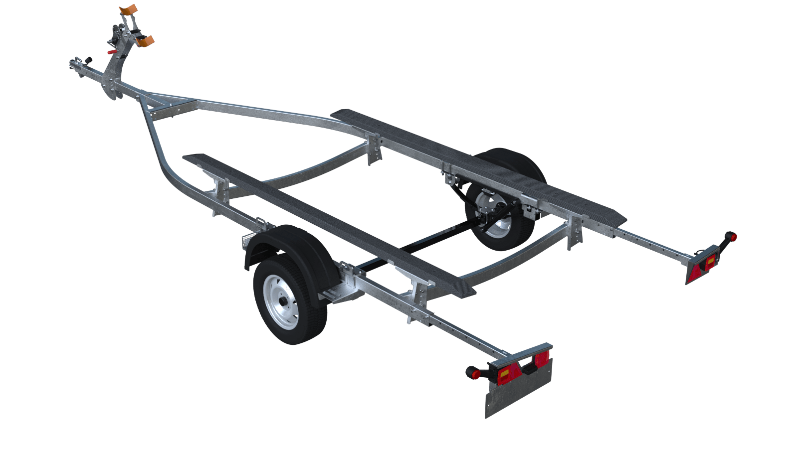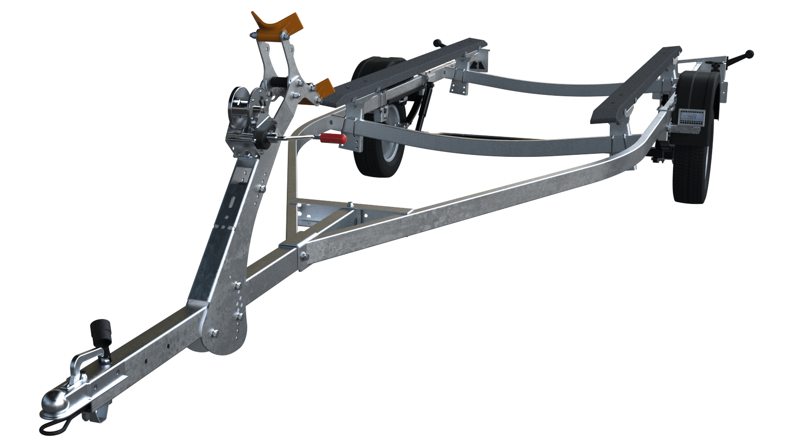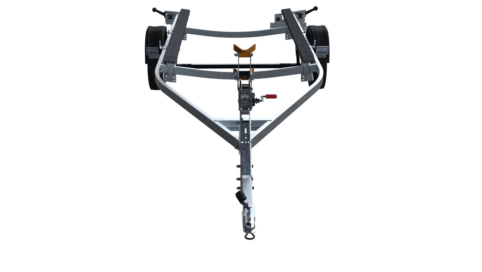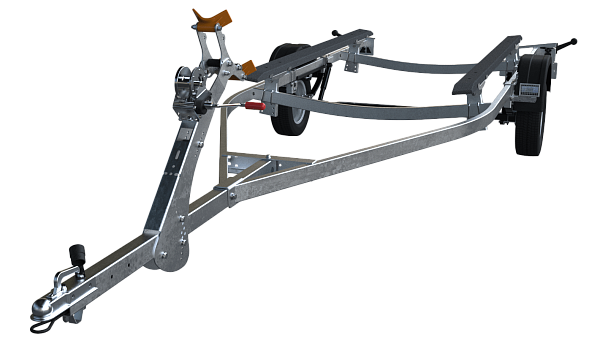 Труба дышла 80х60 крепится к раме на болтовых соединениях. Регулируемый носовой упор с лебёдкой имеет несколько вариантов настройки положения и наклона. Ложементы могут менять положение относительно поперечин рамы, имеют регулируемый угол наклона и регулируемую высоту.