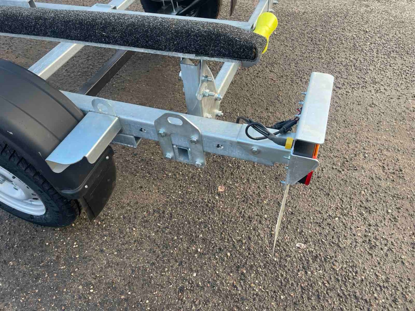 Рама и дышло прицепа обработаны методом горячего цинкования. Цинковое покрытие, в отличие от лакокрасочного, обеспечивает надежную защиту металла от коррозии даже в местах царапин и отверстий.
