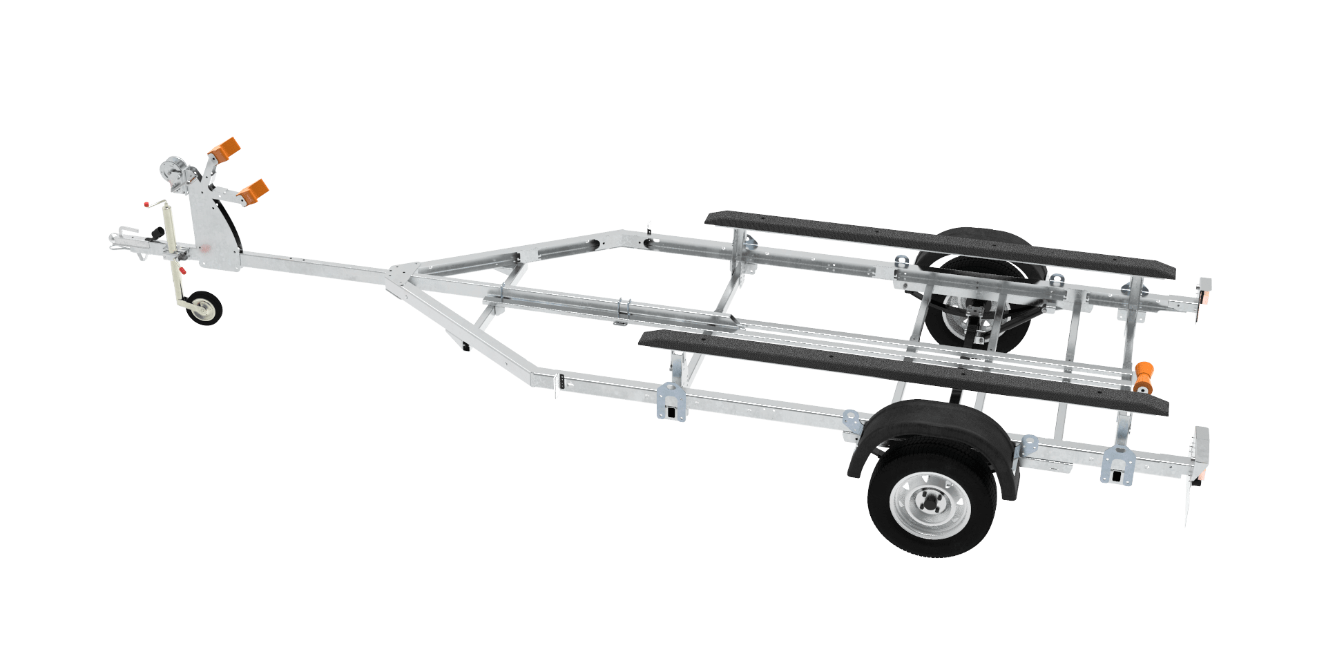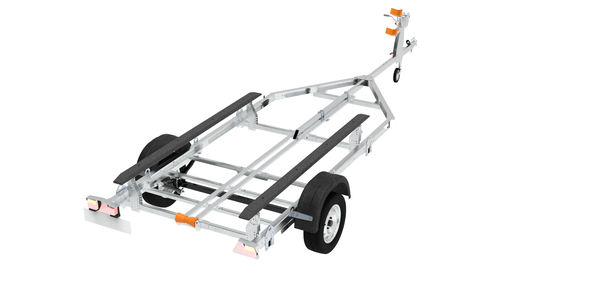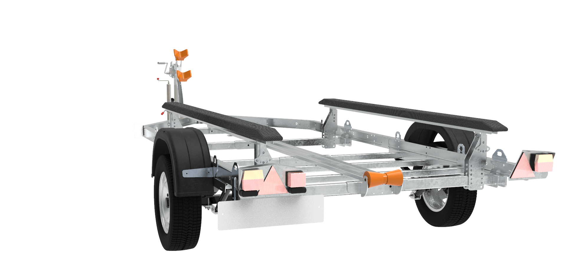 Изменяемое положение подвески (шасси) прицепа позволяет правильно распределить центр тяжести погруженного судна.