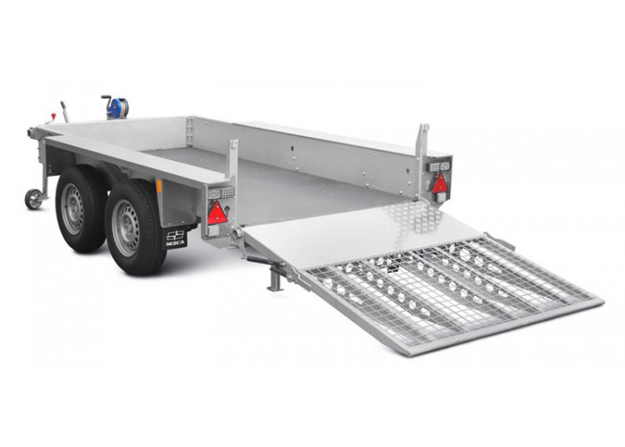 - Опрокидываемый задний борт-трап даёт возможность самостоятельного заезда техники не зависимо от размера колеи колёс или гусеничного хода.