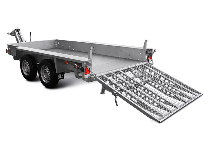 ● Опрокидываемый задний борт-трап даёт возможность самостоятельного заезда техники не зависимо от размера колеи колёс или гусеничного хода.